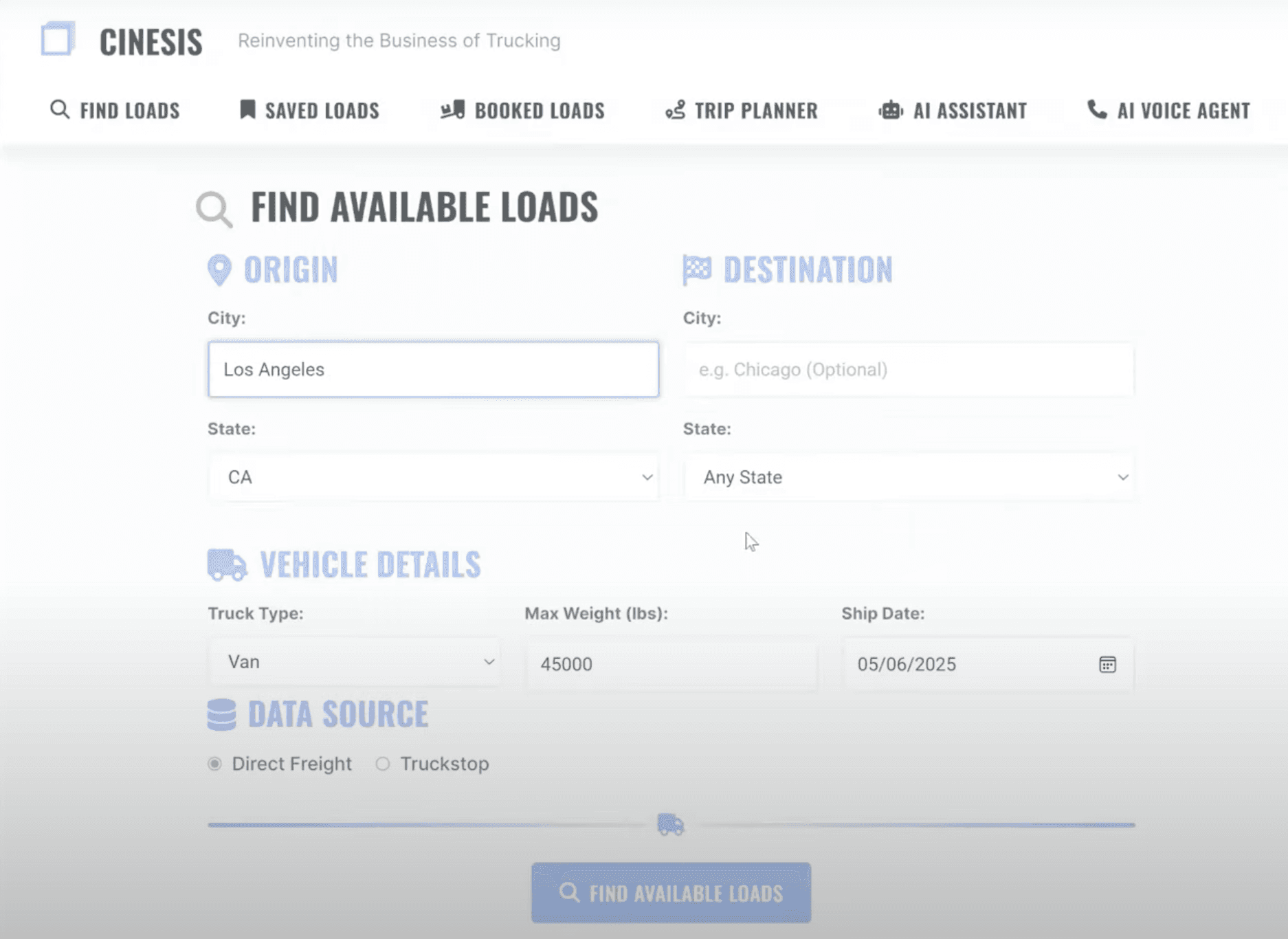 Cinesis has officially launched its first beta product: the AI Load Finder — designed to help truck owner-operators and dispatchers find and book loads faster than ever.